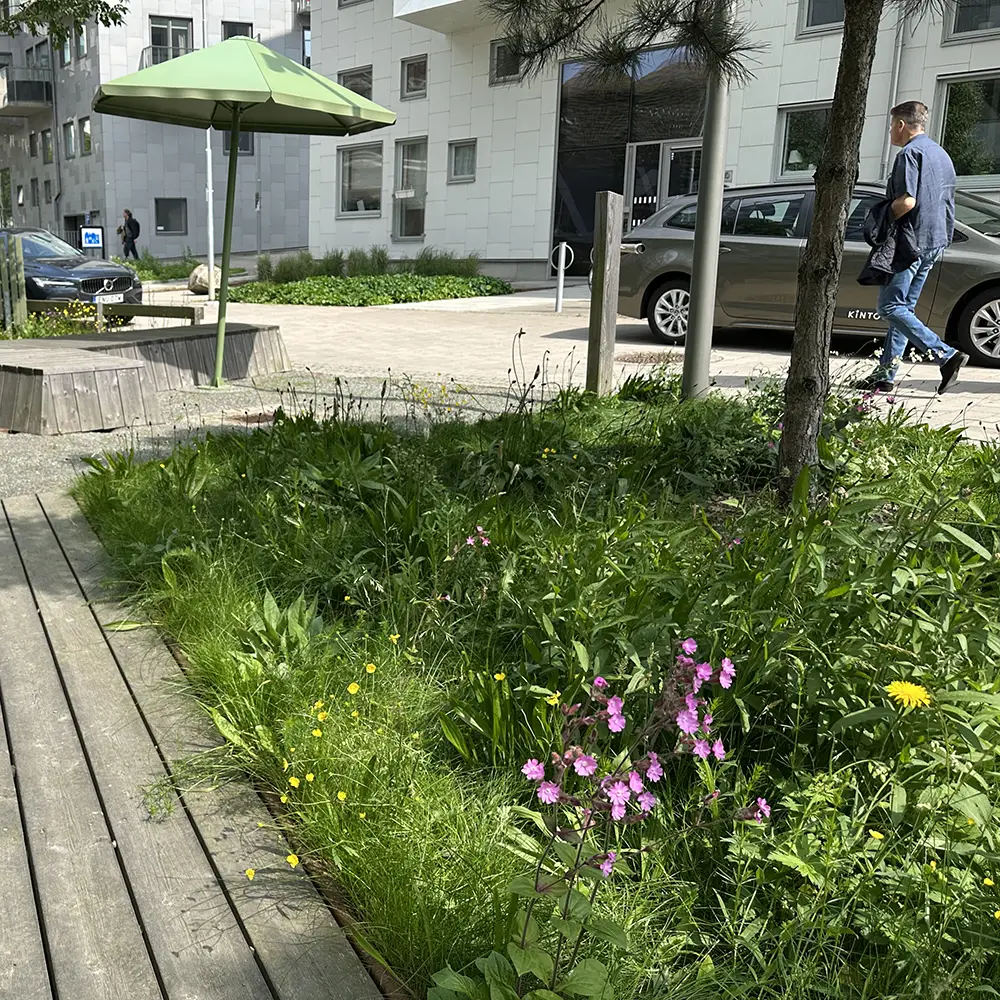 NYHET 2026. Örtrik ängsmatta är utvecklad för urbana miljöer där kraven på robusta och blommande arter är extra viktiga. Artmixen i ängsmattan innehåller växter som trivs i torra, friska och lätt fuktiga marker, vilket gör mattan flexibel och anpassningsbar till olika typer av växtplatser.